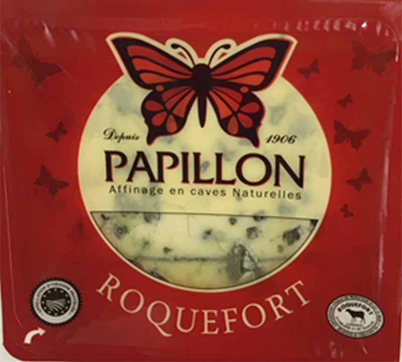 | Papillon | Roquefort noir | Demi-meule de poids variable d'environ 1,375 kg |